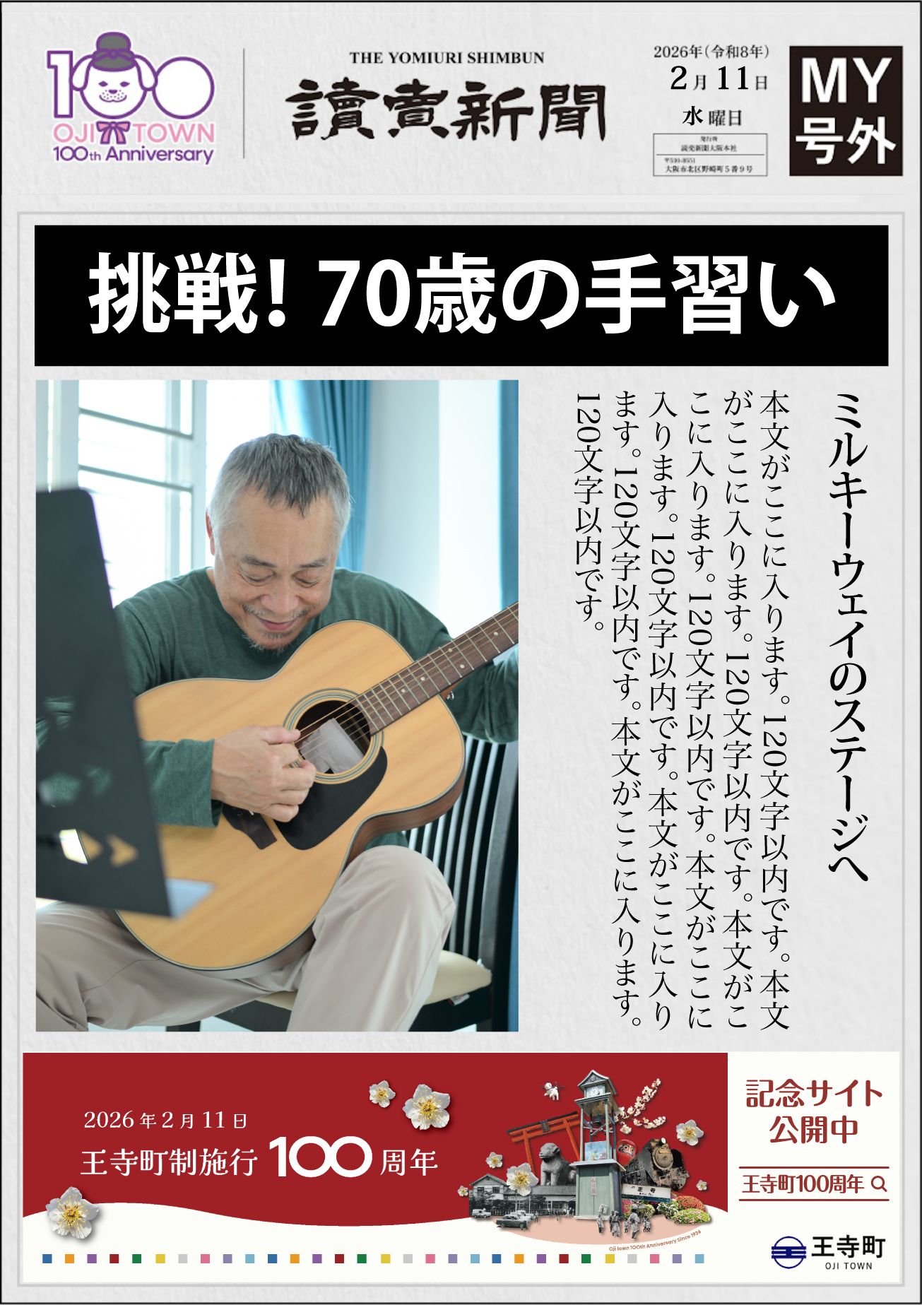 「100チャレンジ号外」は、100周年を機に、これから挑戦したいこと、達成したいことを、自分だけの「MY号外」の形で残すプロジェクトです。
